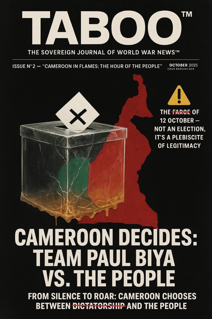 "This issue of TABOO™ unveils the battle for Cameroon’s soul — between an aging regime clinging to power and a people demanding liberation."